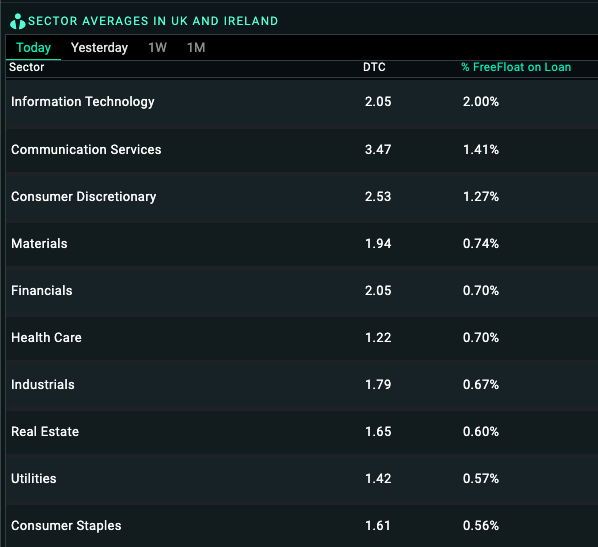 Short Interest Sector List