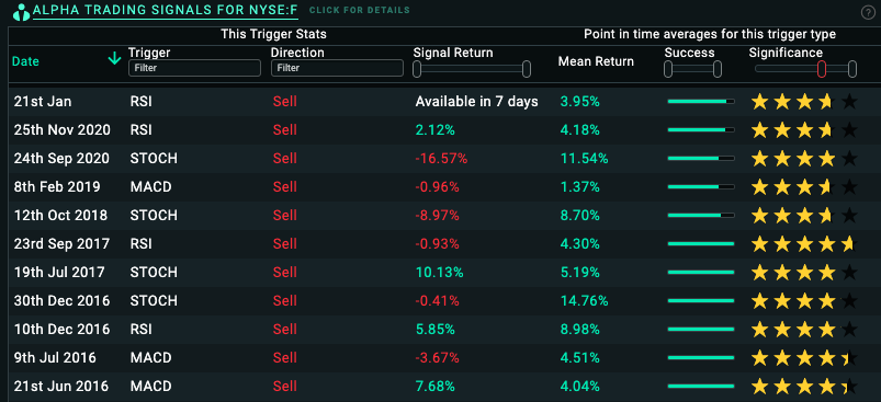 The Alpha Trading Signals box shows you the recent signals for this stock.