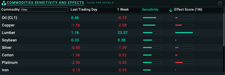 Effect Score indicates how large the effect of the commodities price change is expected to have on the stock.