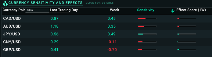 Effect Score indicates how large the effect of the currency price change is expected to have on the stock.