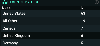 This list shows the percentage of a companies sales by country or geographical region over the past year.