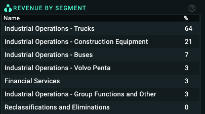 This box shows the percentage of overall revenue that each segment of the company produces.